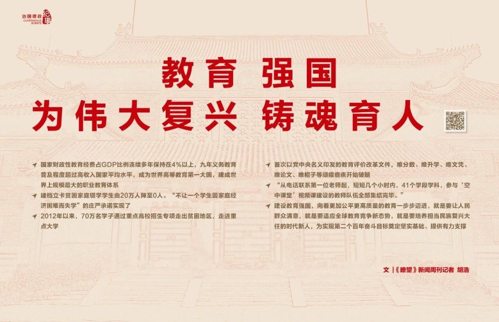 實(shí)現(xiàn)中華民族偉大復(fù)興,歸根到底靠人才、靠教育。建設(shè)教育強(qiáng)國,向著更加公平更高質(zhì)量的教育一步步邁進(jìn),就是要讓人民群眾滿意,就是要適應(yīng)全球教育競爭新態(tài)勢,就是要培養(yǎng)擔(dān)當(dāng)民族復(fù)興大任的時代新人,為實(shí)現(xiàn)第二個百年奮斗目標(biāo)奠定堅實(shí)基礎(chǔ)、提供有力支撐。(記者 胡浩)