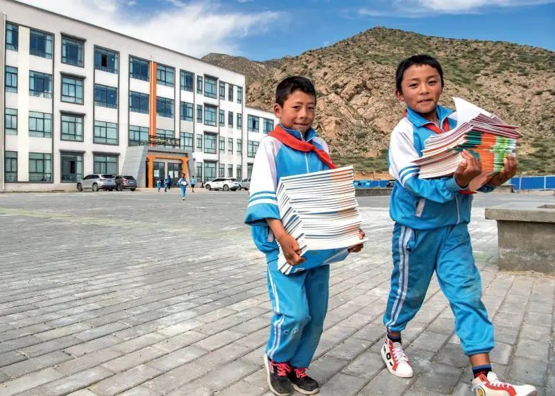 ▲西藏山南市貢嘎縣森布日幸福家園九年一貫制學(xué)校的學(xué)生們在搬新書( 2020年8月24日攝) 孫非攝 / 本刊