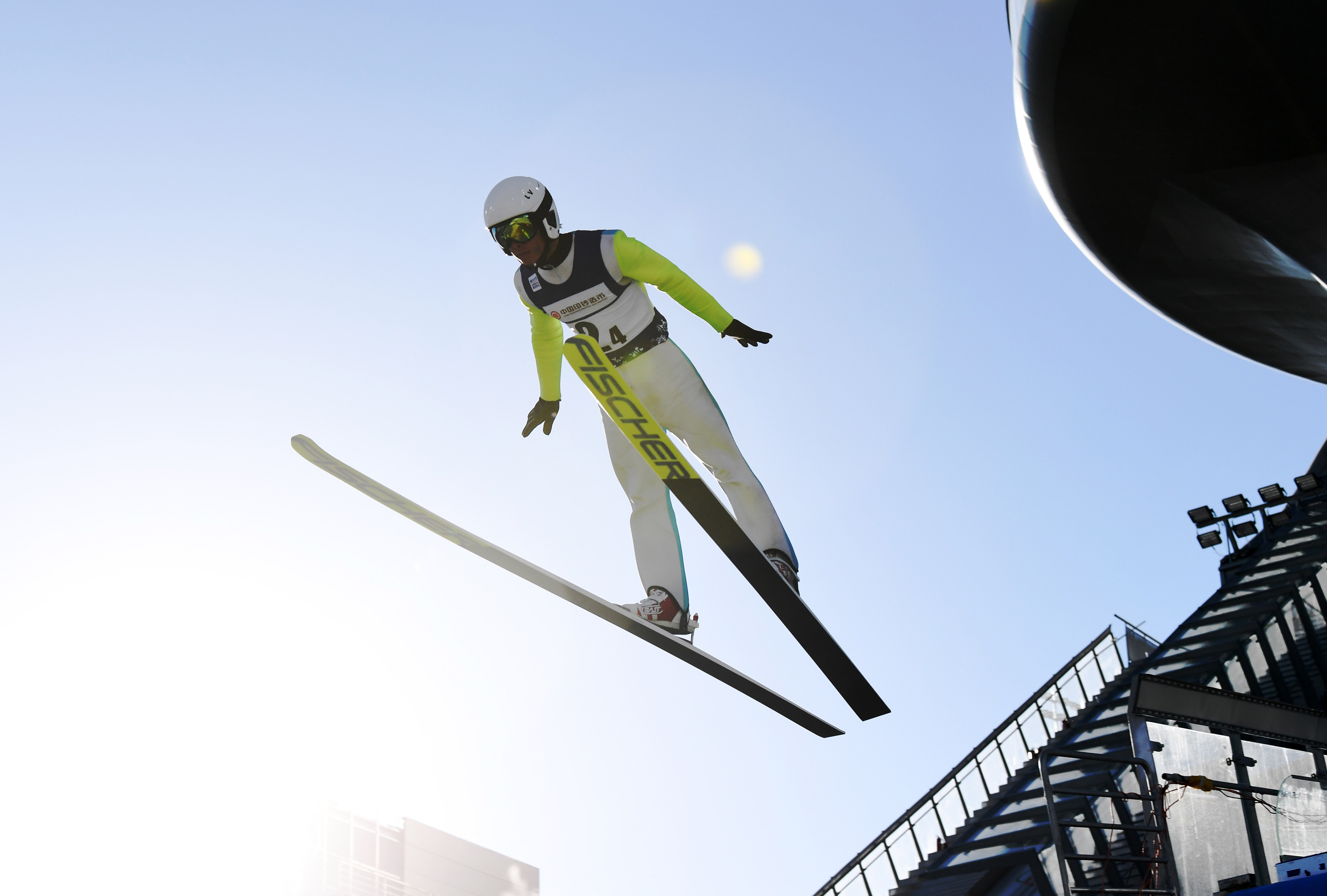 ▲ 2021年2月25日,一名運(yùn)動(dòng)員在位于河北省張家口市崇禮區(qū)的2022年北京冬奧會(huì)張家口賽區(qū)國(guó)家跳臺(tái)滑雪中心“雪如意”上進(jìn)行比賽。