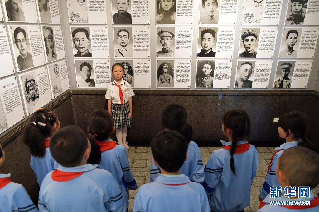 在井岡山革命烈士陵園,“小紅軍宣講團”的成員周煜菡給前來參觀研學的學生們進行義務(wù)講解(5月12日攝)。新華社記者 彭昭之 攝