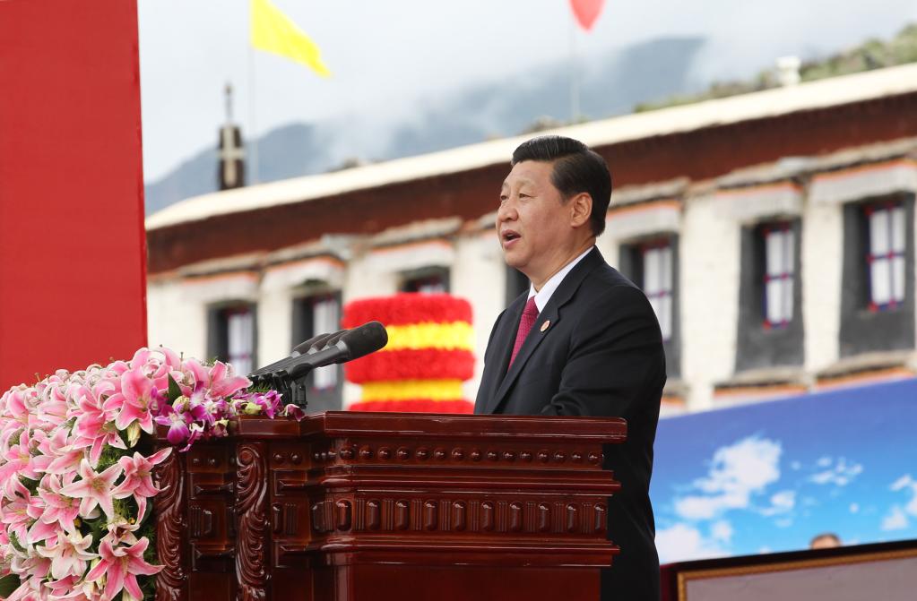 2011年7月19日,西藏和平解放60周年慶祝大會(huì)在拉薩舉行。習(xí)近平在慶祝大會(huì)上講話(huà)。新華社記者 丁林 攝