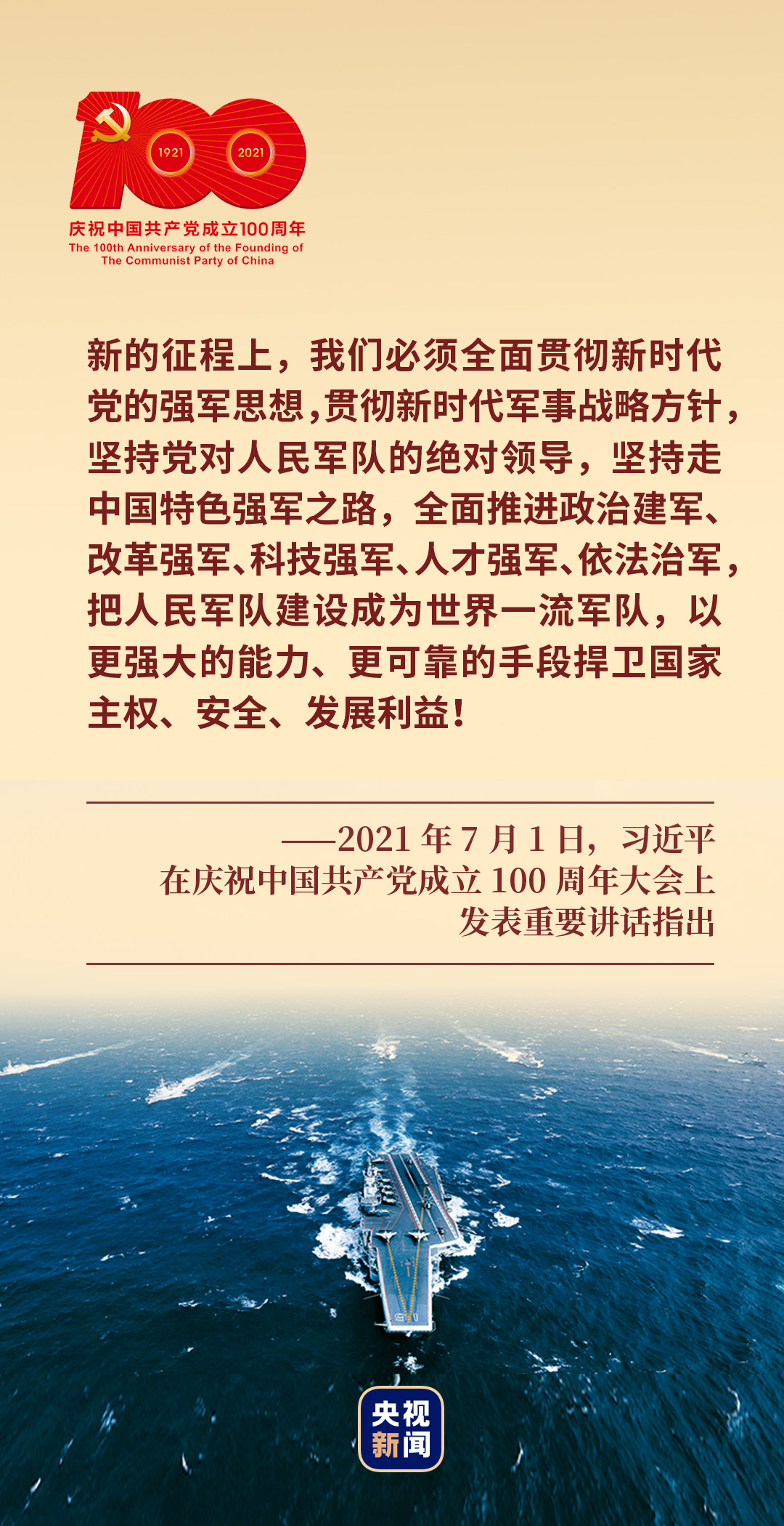 “把人民軍隊(duì)建設(shè)成為世界一流軍隊(duì),以更強(qiáng)大的能力、更可靠的手段捍衛(wèi)國家主權(quán)、安全、發(fā)展利益!”2021年7月1日,習(xí)近平總書記在慶祝中國共產(chǎn)黨成立100周年大會(huì)上的鏗鏘話語,指引現(xiàn)實(shí),啟迪未來。