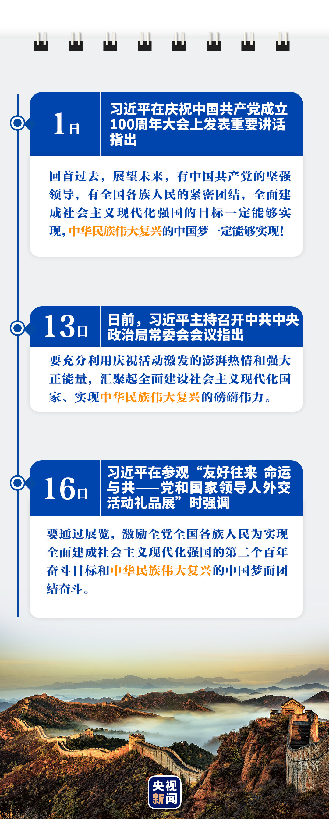 “這一百年來開辟的偉大道路、創(chuàng)造的偉大事業(yè)、取得的偉大成就,必將載入中華民族發(fā)展史冊(cè)、人類文明發(fā)展史冊(cè)!”總書記的話語(yǔ)擲地有聲。