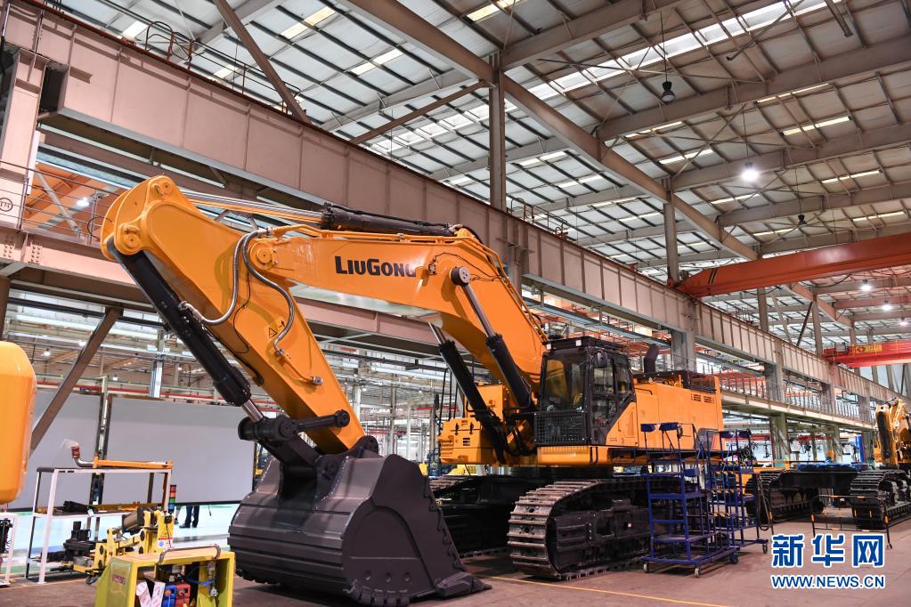 這是4月26日拍攝的廣西柳工集團有限公司生產(chǎn)廠房內正在組裝的機械。新華社記者 曹祎銘 攝