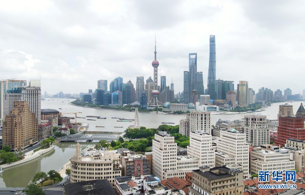 這是8月12日拍攝的上海黃浦江外灘區(qū)段兩岸樓群(無人機照片)。新華社記者 方喆 攝