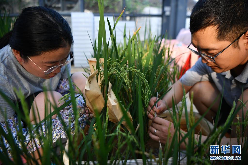 2020年1月11日,科研人員在位于海南省陵水黎族自治縣的華中農(nóng)業(yè)大學水稻南繁基地溫室內工作。新華社記者 郭程 攝