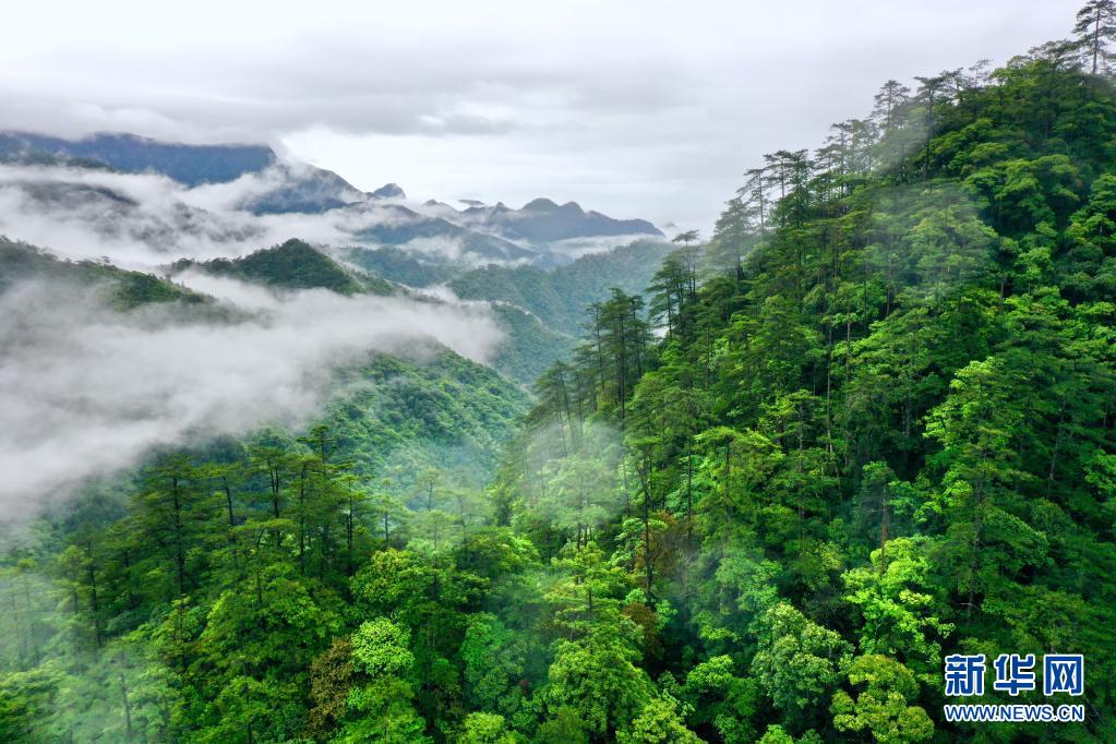 5月18日,武夷山國家公園桐木村附近群山云霧繚繞(無人機照片)。新華社記者 姜克紅 攝