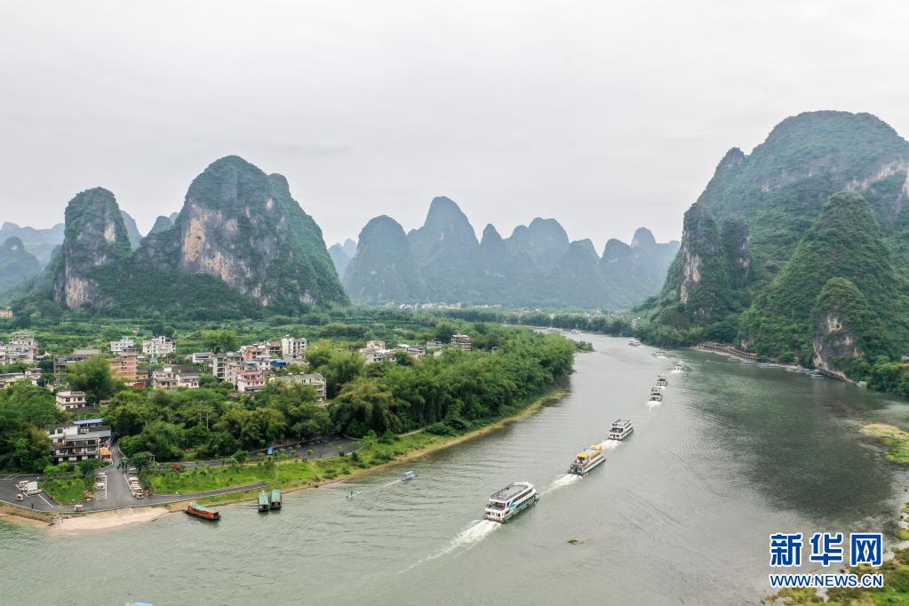 這是4月25日拍攝的漓江廣西陽朔段(無人機照片)。新華社記者 曹祎銘 攝