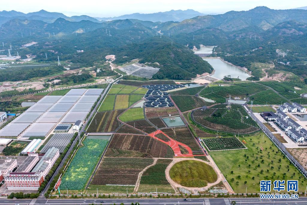 這是7月7日在浙江省東陽市花園村拍攝的現(xiàn)代農(nóng)業(yè)生態(tài)園(無人機照片)。新華社記者 徐昱 攝