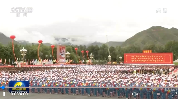 上午10時(shí),西藏自治區(qū)黨委副書(shū)記、自治區(qū)人民政府主席齊扎拉宣布大會(huì)開(kāi)始。全場(chǎng)起立,奏唱國(guó)歌,鮮艷的五星紅旗在布達(dá)拉宮廣場(chǎng)冉冉升起。