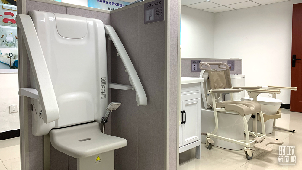 △濱河社區(qū)對部分家居用品進(jìn)行適老化改造,使之符合老年人的身體機(jī)能和行動特點(diǎn)。這是壁掛式沐浴器。(總臺央視記者程鋮拍攝)