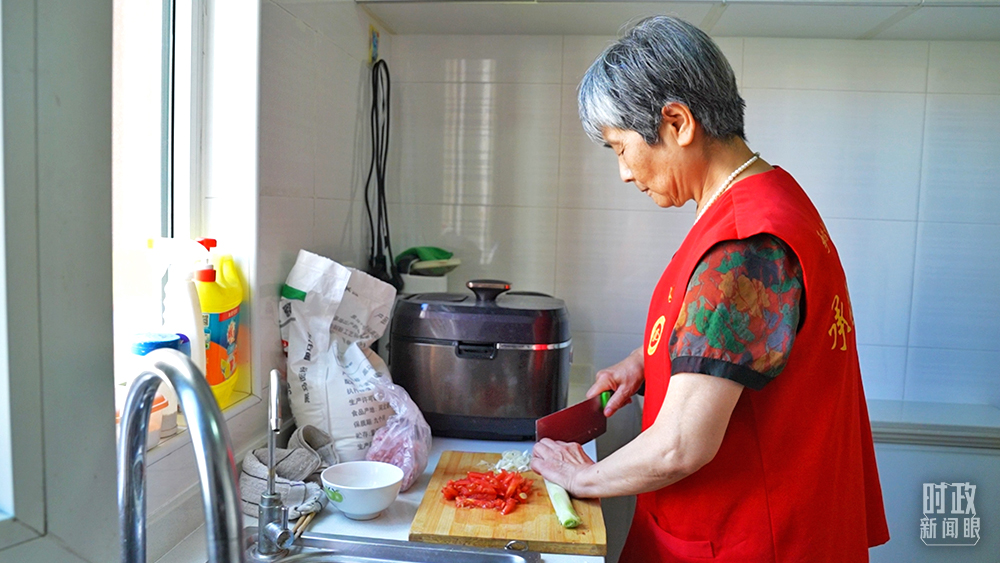 △志愿者為社區(qū)老人提供助潔、助餐等服務(wù)。(總臺央視記者程鋮、張宇拍攝)