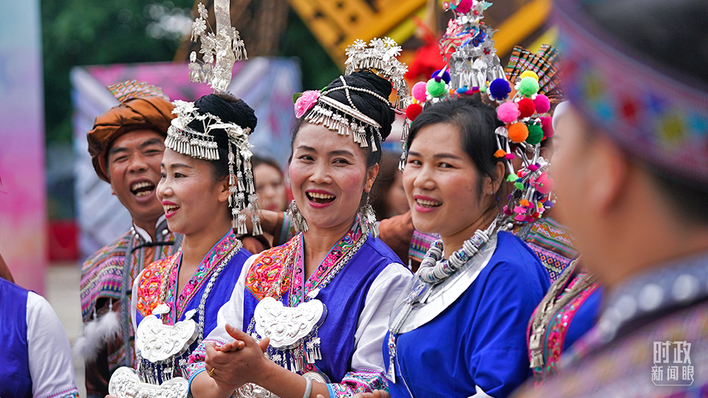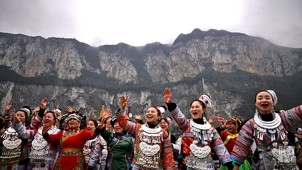 △今年2月,習近平來到貴州化屋村考察,當?shù)卮迕裼脷g快的苗家歌舞迎接總書記。(總臺央視記者王哈男拍攝)