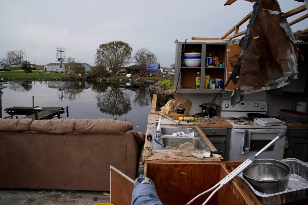 △ 美國路易斯安那州,受颶風(fēng)“艾達(dá)”影響的當(dāng)?shù)貫?zāi)區(qū)