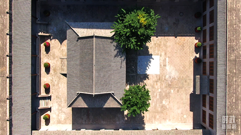 △從空中俯瞰,中共綏德地委舊址是一個方方正正的古樸院落。(總臺記者趙振凱拍攝)