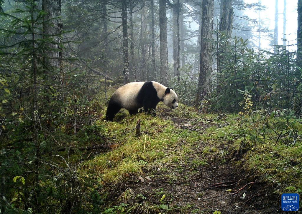 這是大熊貓國(guó)家公園甘肅白水江片區(qū)的紅外相機(jī)拍攝到的野生大熊貓活動(dòng)畫面(資料圖片)。新華社發(fā)(甘肅白水江國(guó)家級(jí)自然保護(hù)區(qū)管理局供圖)