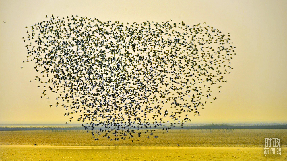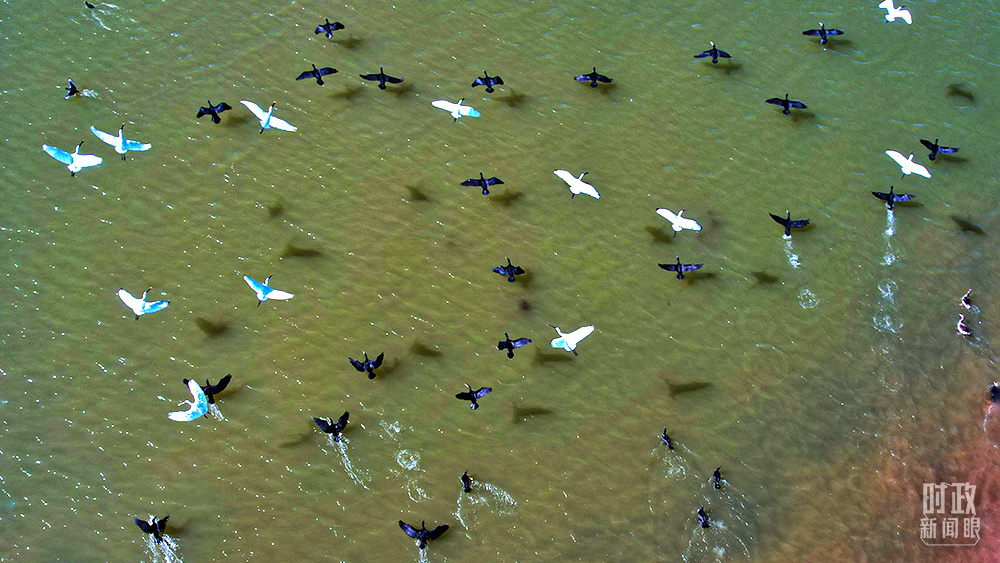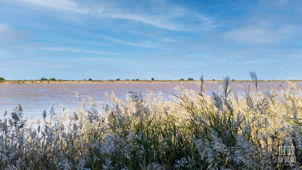 △當(dāng)天的黃河三角洲上,蘆花飄搖、候鳥成群。(總臺央視記者彭漢明、國廣記者李晉拍攝)