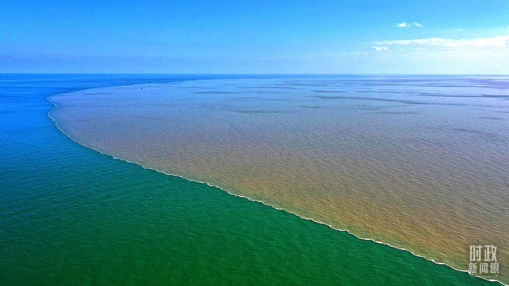 △黃河入??诘靥幉澈:腿R州灣交匯處。(總臺央廣記者潘毅、國廣記者李晉拍攝)