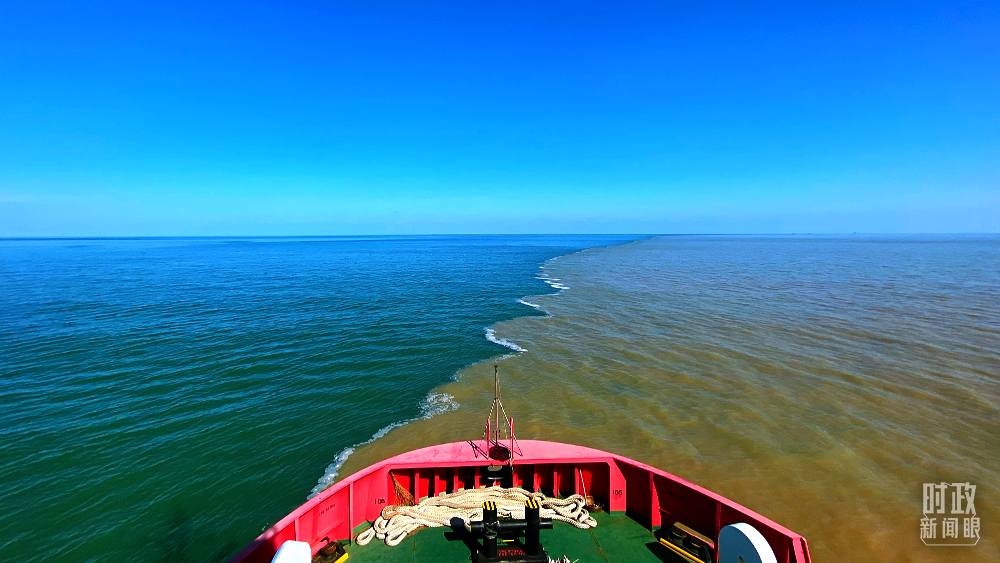 △用于海洋救援的拖輪駛?cè)?ldquo;河海交匯”之處。(總臺央視記者張宇拍攝)
