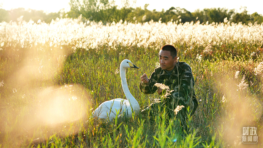 △李建是黃河三角洲國家級自然保護(hù)區(qū)的鳥類馴養(yǎng)師。(總臺央視記者程鋮拍攝)