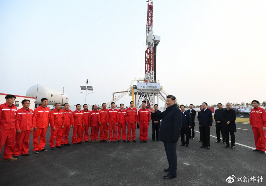 21日,習(xí)近平總書記繼續(xù)在山東省東營市考察調(diào)研。他先后來到黃河三角洲農(nóng)業(yè)高新技術(shù)產(chǎn)業(yè)示范區(qū)、墾利區(qū)董集鎮(zhèn)楊廟社區(qū)、勝利油田勘探開發(fā)研究院和鉆井平臺(tái),了解黃河三角洲鹽堿地綜合利用和現(xiàn)代農(nóng)業(yè)發(fā)展、黃河灘區(qū)和原蓄滯洪區(qū)居民遷建、勝利油田創(chuàng)新發(fā)展等情況。(文字記者:張曉松、朱基釵;攝影記者:李學(xué)仁、謝環(huán)馳、王曄)