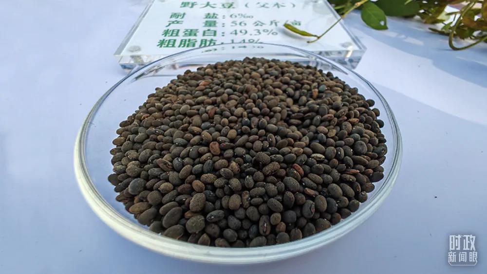 △示范區(qū)的野大豆,個(gè)頭如同大米粒般,是耐鹽糧食作物。(總臺(tái)央視記者彭漢明拍攝)