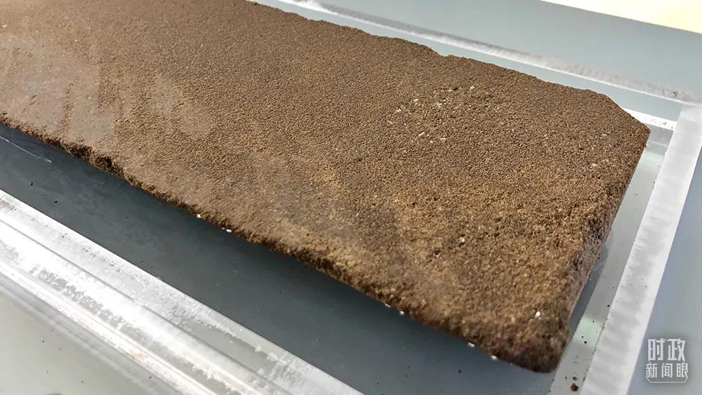 △這是棕褐色油浸細(xì)砂巖。(總臺(tái)央視記者許永松拍攝)