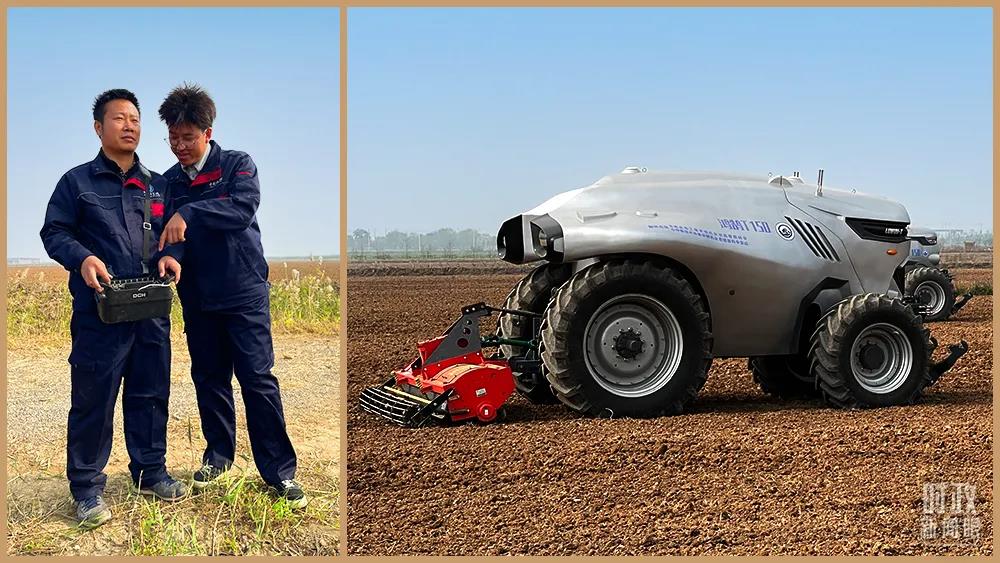 △農(nóng)高區(qū)的科研人員遙控操作智能農(nóng)機(jī)。(總臺(tái)央視記者趙化拍攝)
