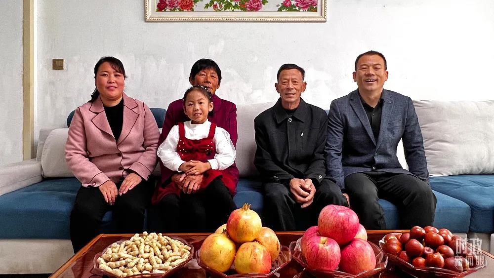 △這是21日當(dāng)天,許福華(右二)老人一家拍攝的全家福。(總臺(tái)央視記者邢彬拍攝)