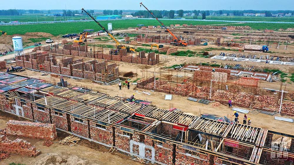 △2019年8月,菏澤市東明縣焦園鄉(xiāng)灘區(qū)遷建8號村臺(tái),施工人員正緊鑼密鼓為灘區(qū)百姓建設(shè)新家園。(圖/視覺中國)