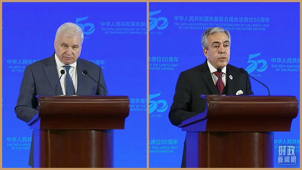 今年的同一天,中華人民共和國恢復(fù)聯(lián)合國合法席位50周年紀(jì)念會(huì)議在北京隆重舉行。