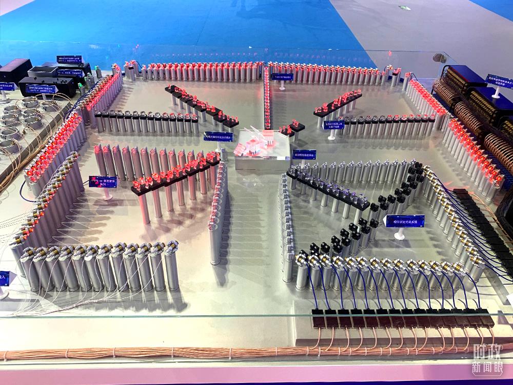 △“九章”量子計算原型機模型。它處理“高斯玻色取樣”的速度比超級計算機快一百萬億倍,也就是說“九章”一分鐘完成的任務(wù),超級計算機需要一億年。(總臺央視記者范一鳴拍攝)