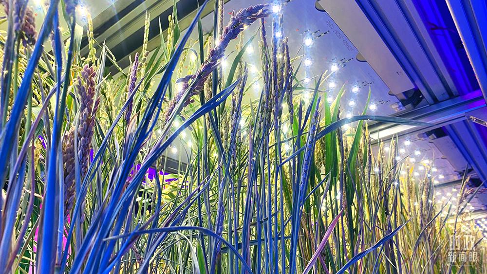 △無人植物工廠水稻育種加速器,采用多層立體栽培精準調(diào)控方式,破解了水稻生育期由120天減半至60天的技術(shù)難題。目前畝產(chǎn)600多公斤。(總臺央視記者范一鳴拍攝)