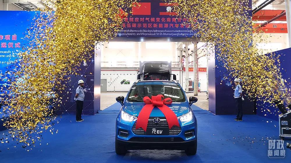 △2021年7月,中國老撾南南合作項目——萬象賽色塔低碳示范區(qū)新能源車發(fā)運儀式在長沙舉行。28輛新能源汽車將助力當(dāng)?shù)匕l(fā)展綠色交通。(圖/視覺中國)