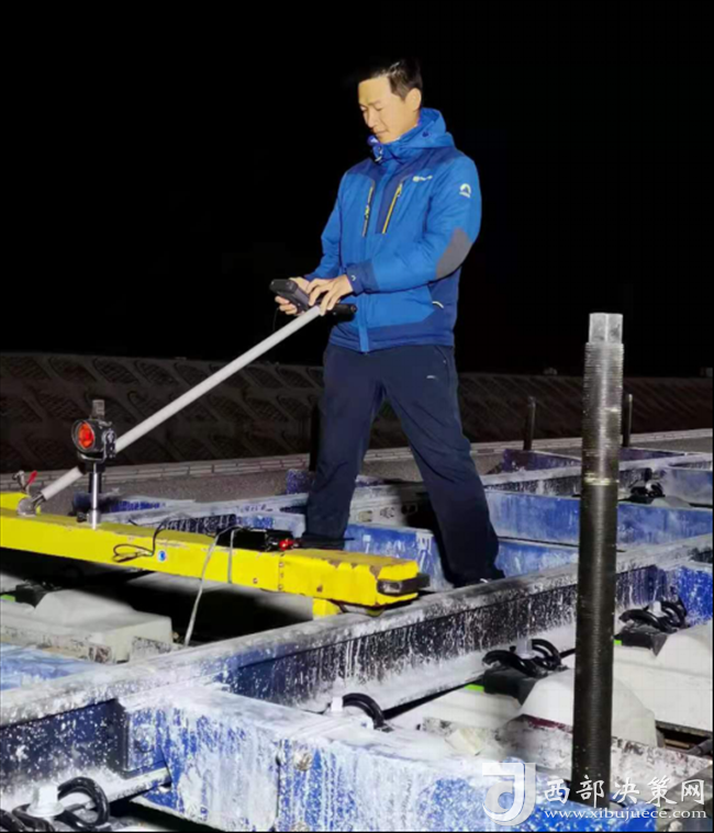 精調(diào)工作開始后,由晨飛首先和施工班組協(xié)調(diào)好了精調(diào)時間,做出了合理安排。雖然精調(diào)過程看起來只是“頂、降、送、升”簡單的四個字,但是對于前后每根橫梁銜接預(yù)留的尺寸卻必須做到心中有數(shù),每一毫米都要做到精確無誤,為了避免浪費時間,每次吃飯他和同事們都只是在工地簡單對付兩口后便立即返回崗位。為了保證精調(diào)工作的順利進行,他每天利用白天休息時間檢查調(diào)試小車的工作狀態(tài),并及時進行保養(yǎng)。他經(jīng)常對同事們說:“對于自己使用的儀器一定要了然于胸,只有這樣才能做到萬無一失。”