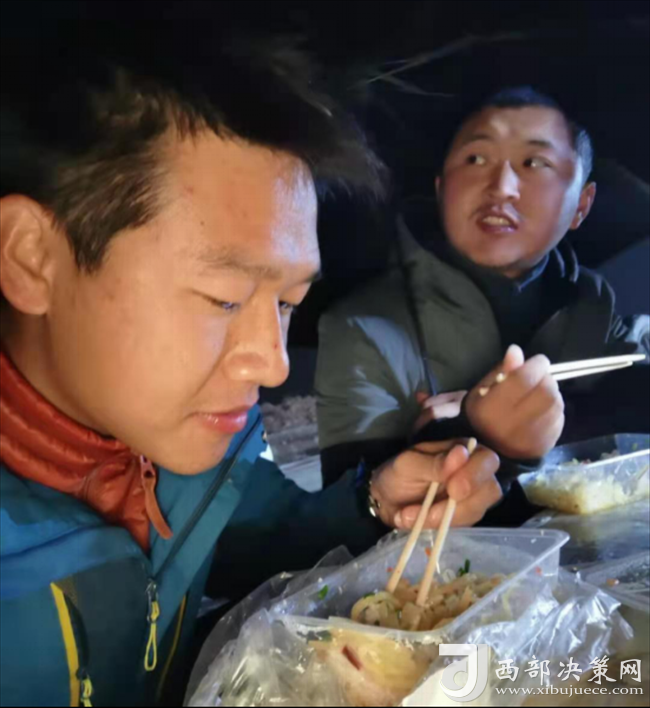 在進行二等水準測量時,進出口聯(lián)測距離為50千米,不僅要面對國道上龐大的車流量,還要面對盤山路的大坡度、大霧的低能見度、突然來襲的雨雪天氣以及雨雪過后的低溫。二等水準的測量方式是步行,因為是高原,所以體力消耗特別大,山里又沒有吃飯的地方,大家只能靠隨身攜帶的面包、開水保證體能。然而即使面對如此困難的環(huán)境,大家依然不忘初心,按時完成了復(fù)測任務(wù)。