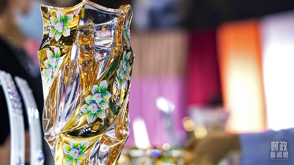 △2021年中國(guó)服貿(mào)會(huì),孟加拉國(guó)展臺(tái)展示的一款玻璃花瓶。(圖/視覺(jué)中國(guó))