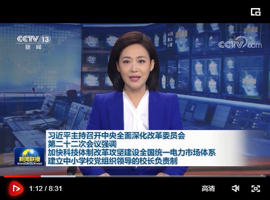 央視網(wǎng)消息(新聞聯(lián)播):中共中央總書記、國家主席、中央軍委主席、中央全面深化改革委員會主任習(xí)近平11月24日下午主持召開中央全面深化改革委員會第二十二次會議,審議通過了《科技體制改革三年攻堅方案(2021-2023年)》、《關(guān)于加快建設(shè)全國統(tǒng)一電力市場體系的指導(dǎo)意見》、《關(guān)于建立中小學(xué)校黨組織領(lǐng)導(dǎo)的校長負(fù)責(zé)制的意見(試行)》、《關(guān)于讓文物活起來、擴(kuò)大中華文化國際影響力的實(shí)施意見》、《關(guān)于支持中關(guān)村國家自主創(chuàng)新示范區(qū)開展高水平科技自立自強(qiáng)先行先試改革的若干措施》。