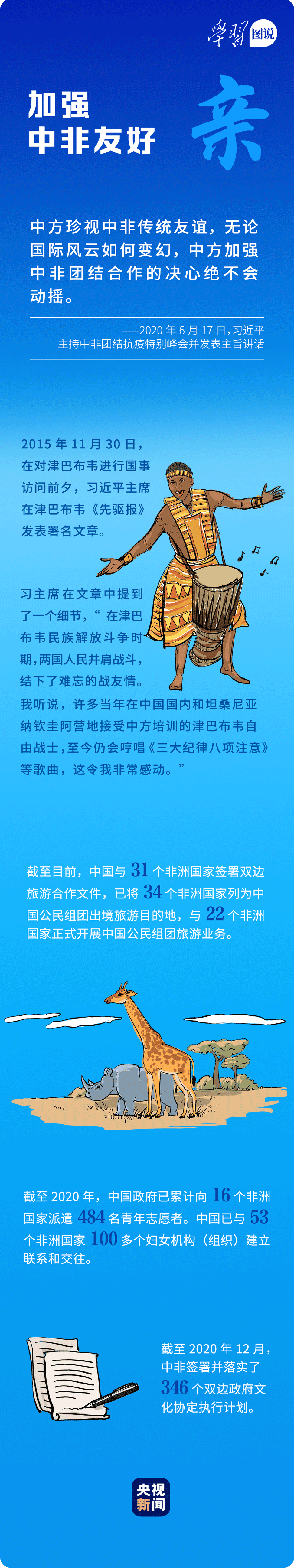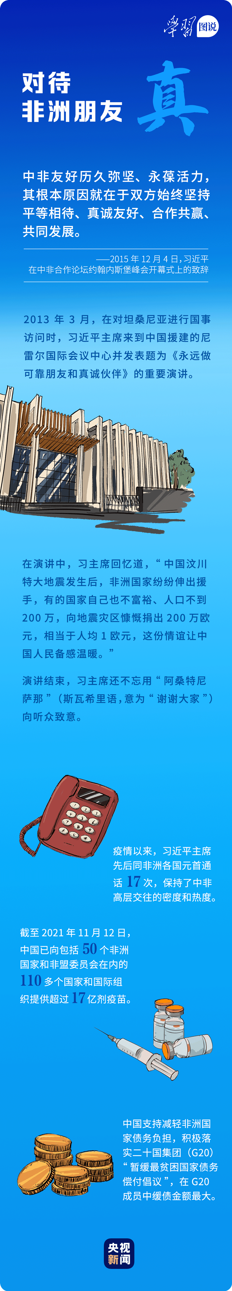 “中國永遠(yuǎn)是非洲的好朋友、好伙伴、好兄弟。”習(xí)近平主席親自推動構(gòu)建更加緊密的中非命運共同體,為構(gòu)建人類命運共同體樹立典范。