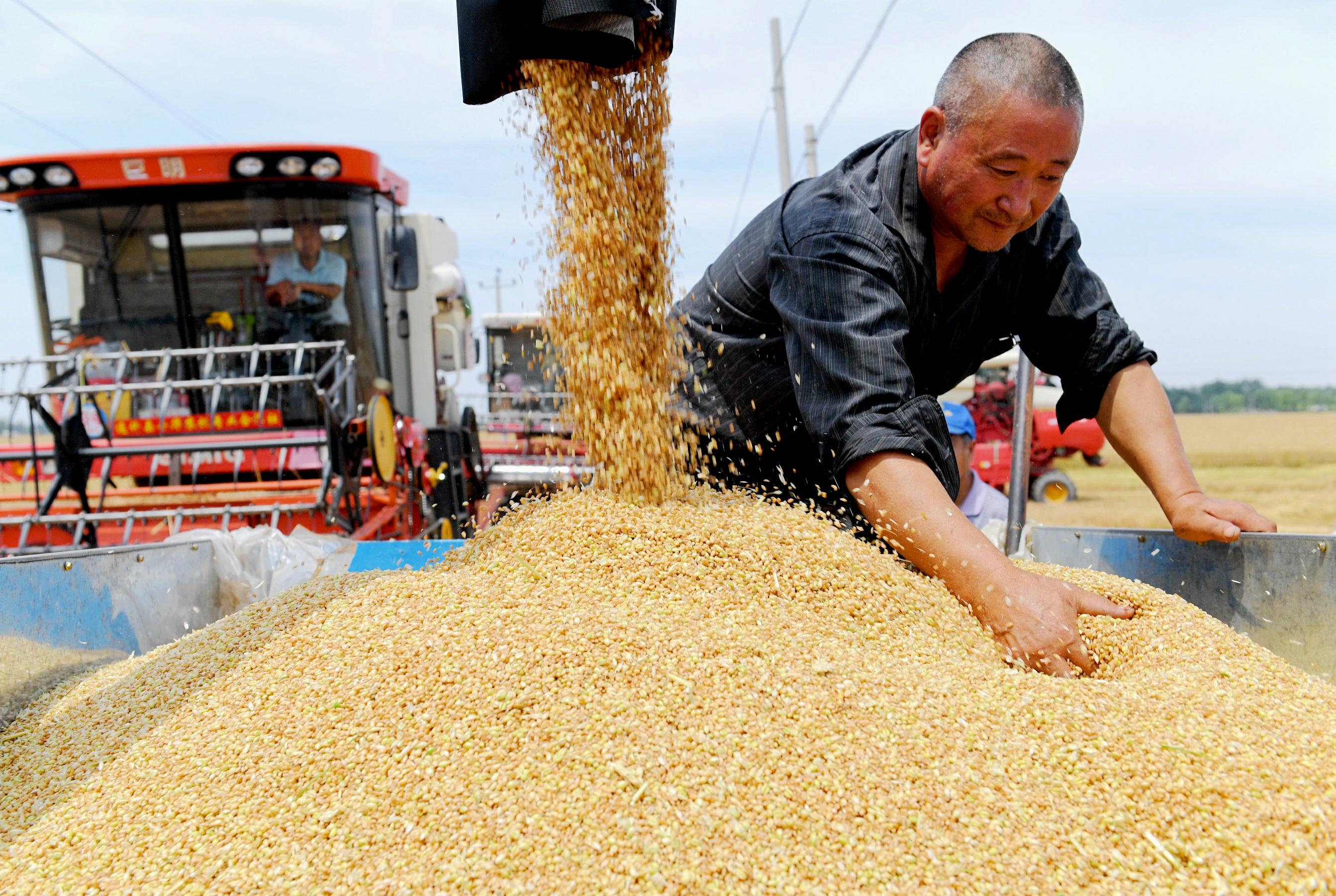 河北省衡水市阜城縣崔家廟鎮(zhèn)前磚門村的農民在麥田收獲小麥(6月13日攝)。新華社記者 朱旭東 攝