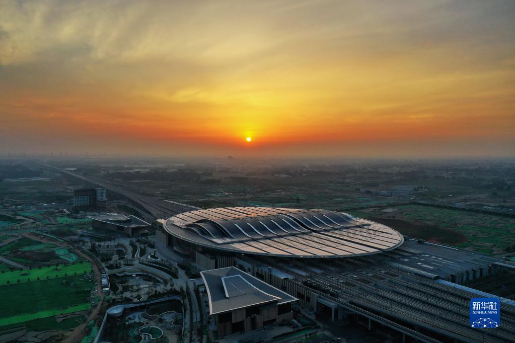 這是京雄城際鐵路雄安站(7月1日攝,無人機照片)。新華社記者 牟宇 攝