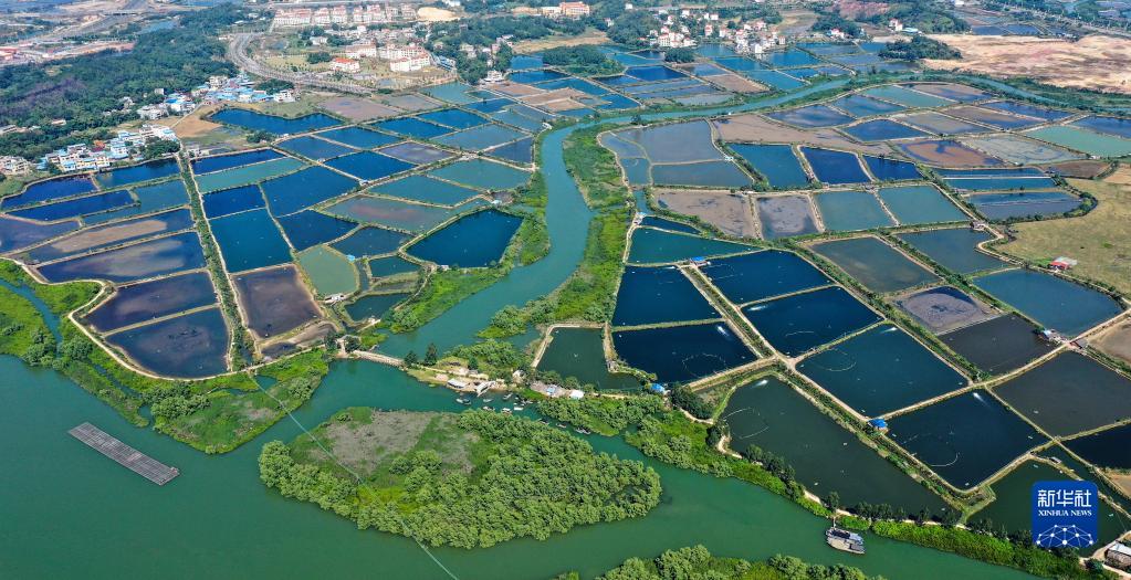 這是廣西欽州市欽南區(qū)沙埠鎮(zhèn)船埠環(huán)村的冬日蝦塘景色(11月25日攝,無人機照片)。新華社記者 張愛林 攝