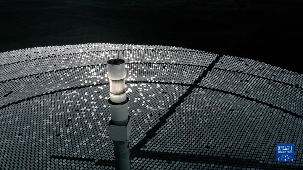 這是位于青海省海南藏族自治州共和縣光伏產(chǎn)業(yè)園內(nèi)一處塔式光熱發(fā)電項(xiàng)目(3月3日攝,無人機(jī)照片)。新華社記者 張宏祥 攝