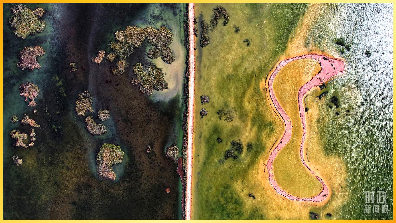 △山東東營(yíng),黃河三角洲濕地。植被豐富,色彩斑斕。(總臺(tái)國(guó)廣記者李晉拍攝)