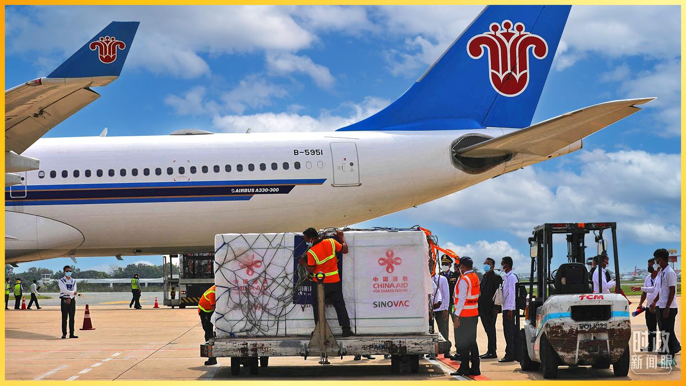 △2021年11月17日,柬埔寨金邊國(guó)際機(jī)場(chǎng),當(dāng)?shù)卣又袊?guó)援柬第七批新冠疫苗。(圖/視覺(jué)中國(guó))