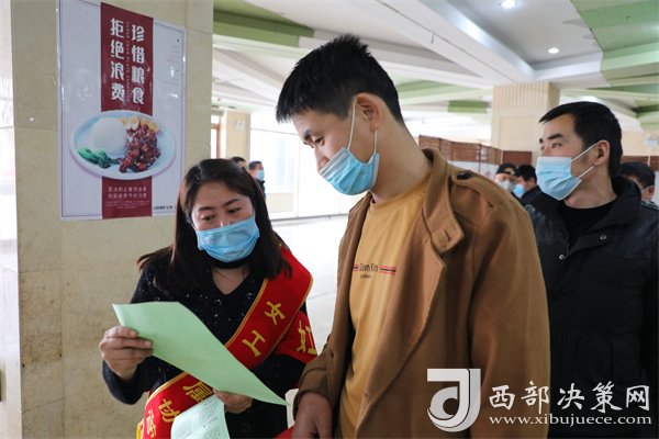 在山陽(yáng)煤礦職工食堂里,大家都正在忙碌著打飯,但有一個(gè)畫(huà)面卻溫暖著每一個(gè)人的心窩,記者用鏡頭捕捉到這樣一幅畫(huà)面,身為家屬協(xié)管員的趙翠芝,給每一位進(jìn)來(lái)的職工發(fā)放疫情知識(shí)宣傳單,并耐心的給她們講解其中的內(nèi)容以及疫情防護(hù)注意事項(xiàng)。