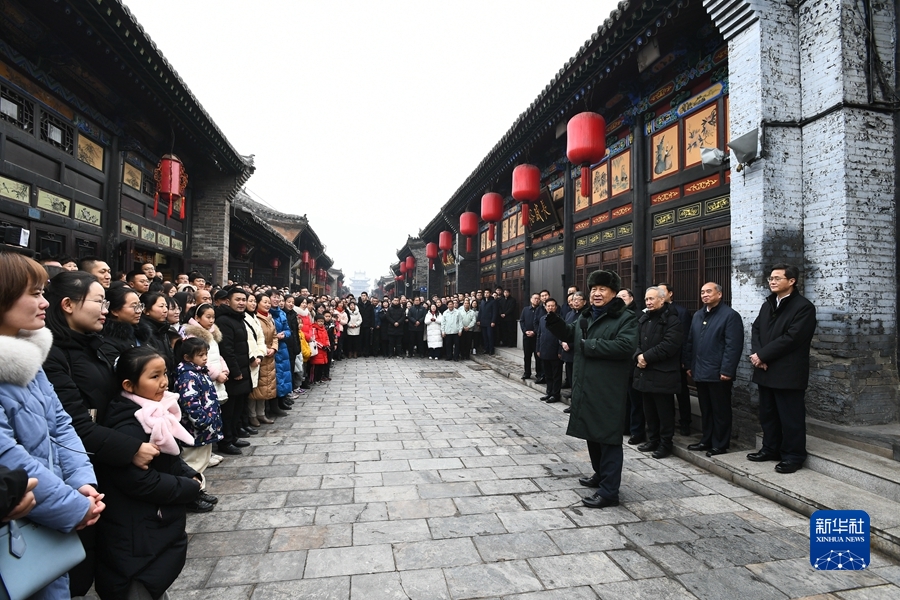 1月26日至27日,中共中央總書記、國家主席、中央軍委主席習近平來到山西,看望慰問基層干部群眾。這是27日上午,習近平在平遙古城同現(xiàn)場群眾親切交流。新華社記者 謝環(huán)馳 攝