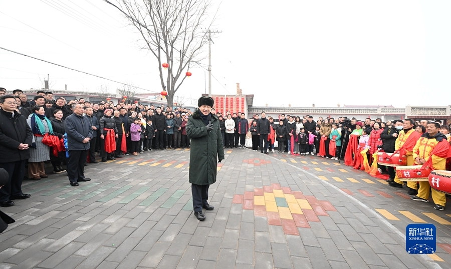 1月26日至27日,中共中央總書記、國家主席、中央軍委主席習近平來到山西,看望慰問基層干部群眾。這是26日下午,習近平在臨汾市汾西縣僧念鎮(zhèn)段村文化廣場,給鄉(xiāng)親們拜年,向全國各族人民、向港澳臺同胞和海外僑胞致以美好的新春祝福。新華社記者 燕雁 攝