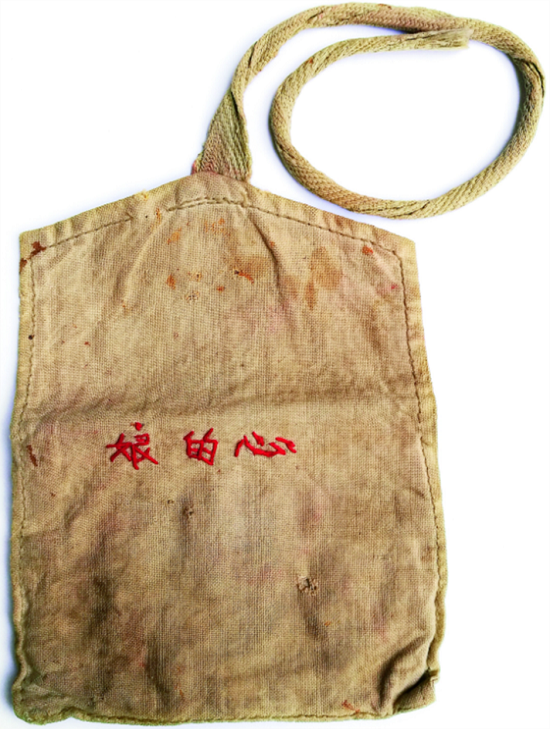 媽媽記掛遠(yuǎn)在陜北農(nóng)村吃苦的兒子,親手縫制了一個針線包,上面繡了三個紅色的字:娘的心。