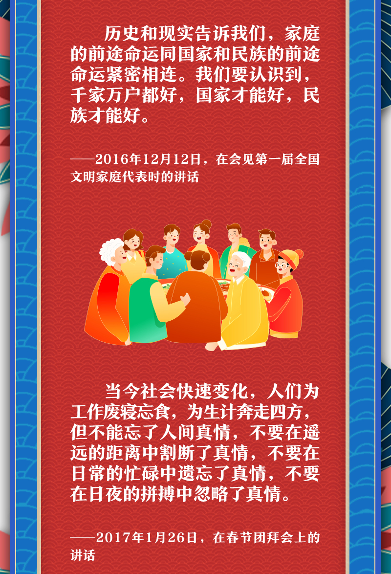 家是最小國(guó),國(guó)是千萬(wàn)家。在習(xí)近平總書記心中,家國(guó)的分量很重。他多次強(qiáng)調(diào)要重視家庭建設(shè),提倡愛(ài)家愛(ài)國(guó)相統(tǒng)一。